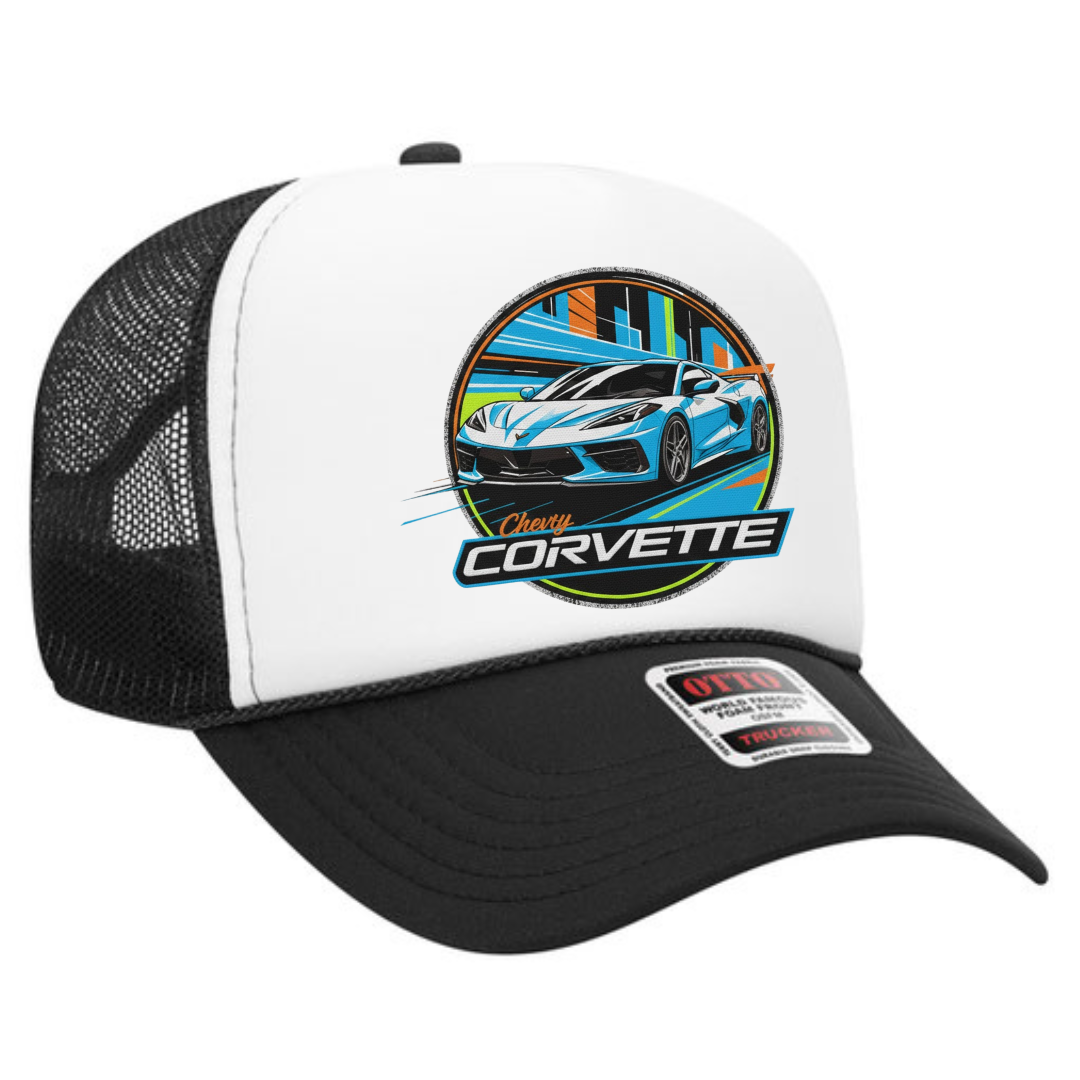 Chevrolet Corvette Trucker Snapback Hat – Classic Muscle Car Mesh Cap, Adjustable Fit